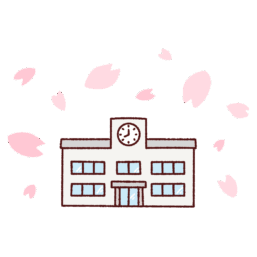学校校舎と桜のイラスト